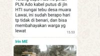 Kabel Listrik Putus di Muara Lawai Muara Enim Bahayakan Warga, Manager PLN : Segera Diperbaiki Petugas