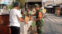 Babinsa Cakung Bersihkan Tumpukan Sampah di Pinggir Jalan